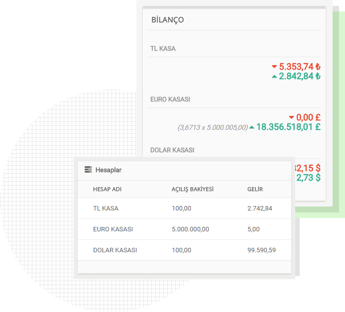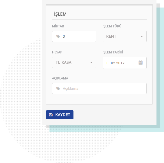 İşletmenize giren çıkan paranın kontrolü sizde olsun! Ödemelerinizi planlayın, izleyin… Giderler, Maaş, Prim ve Avanslar, Kasa ve Banka Hareketlerini takip edin.